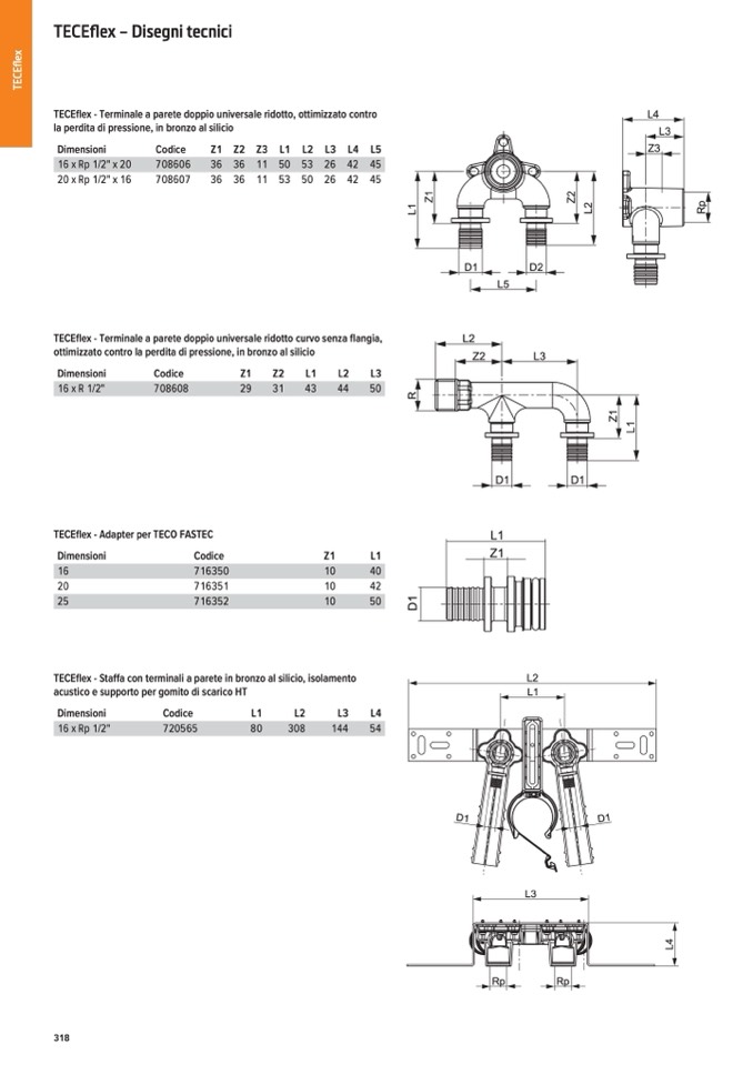 TECEflex - Staffa con terminali a parete in bronzo al silicio, isolamento