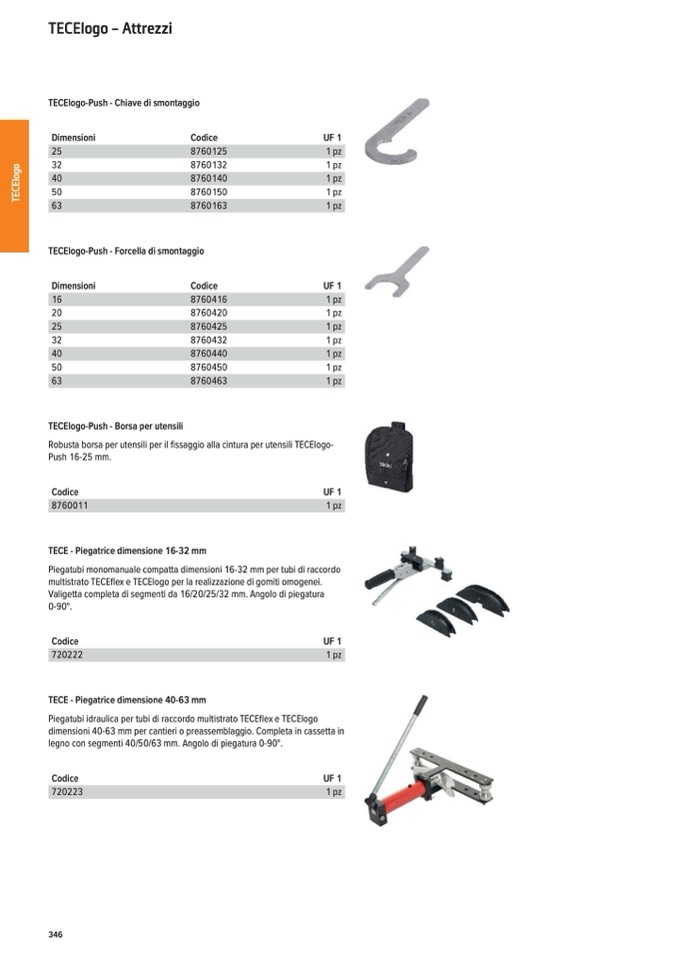 Piegatubi idraulica per tubi di raccordo multistrato TECEflex e TECElogo