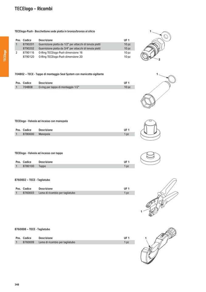 TECElogo-Push - Bocchettone sede piatta in bronzo/bronzo al silicio