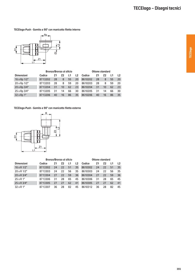 TECElogo-Push - Gomito a 90° con manicotto filetto interno