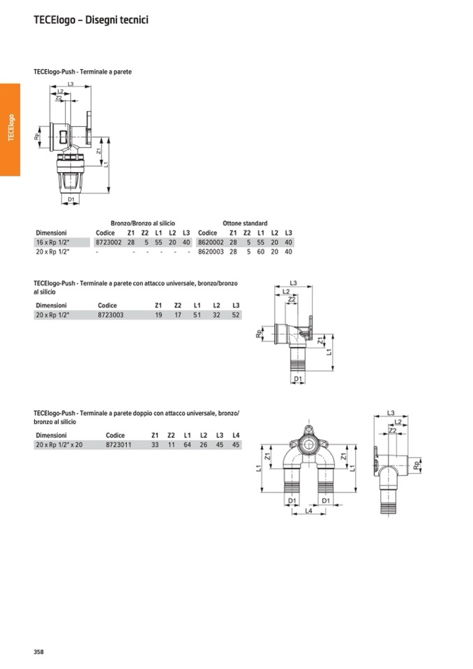 TECElogo-Push - Terminale a parete doppio con attacco universale, bronzo/