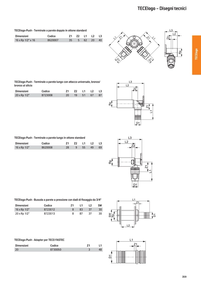 TECElogo-Push - Terminale a parete doppio in ottone standard