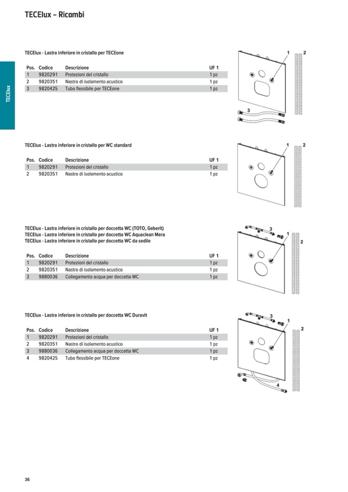 TECElux - Lastra inferiore in cristallo per WC standard