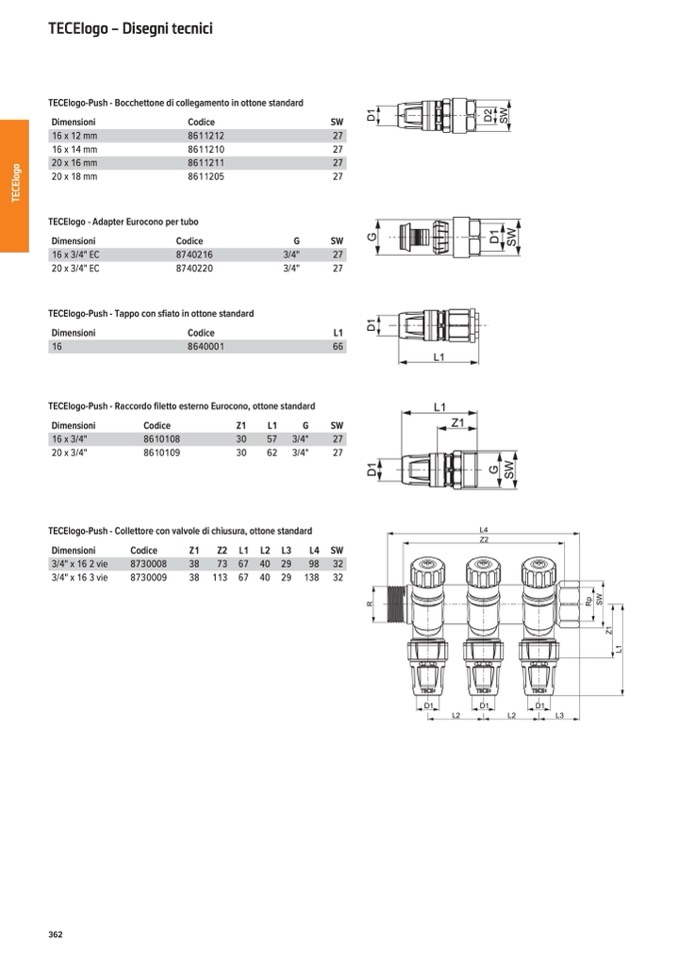 TECElogo-Push - Bocchettone di collegamento in ottone standard