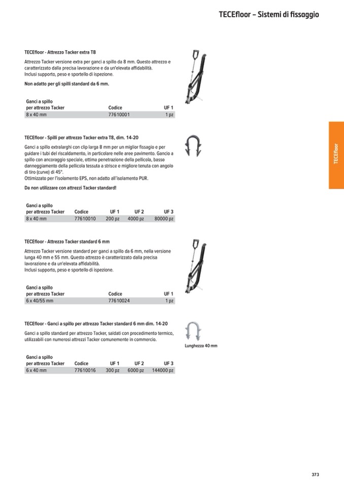 TECEfloor - Ganci a spillo per attrezzo Tacker standard 6 mm dim. 14-20