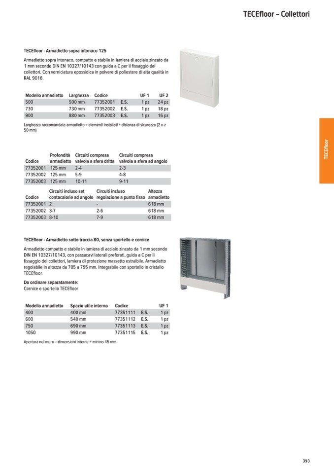 fissaggio dei collettori, lamiera di protezione massetto estraibile. Armadietto