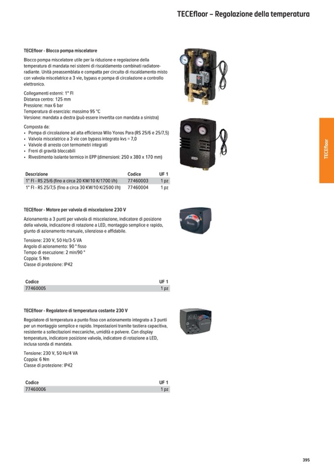 con valvola miscelatrice a 3 vie, bypass e pompa di circolazione a controllo