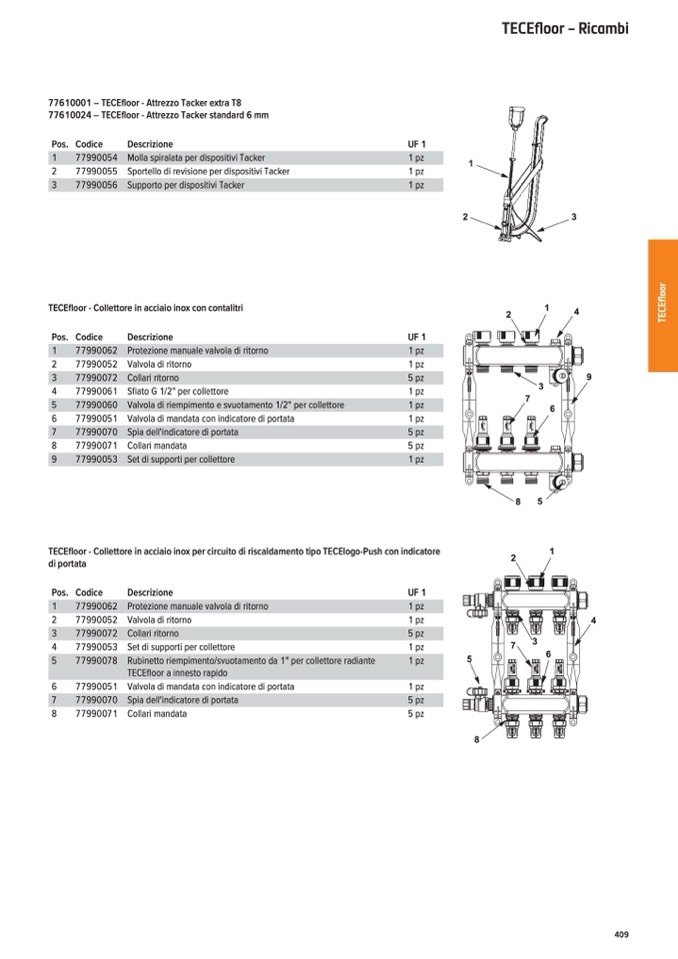TECEfloor - Collettore in acciaio inox per circuito di riscaldamento tipo TECElogo-Push con indicatore
