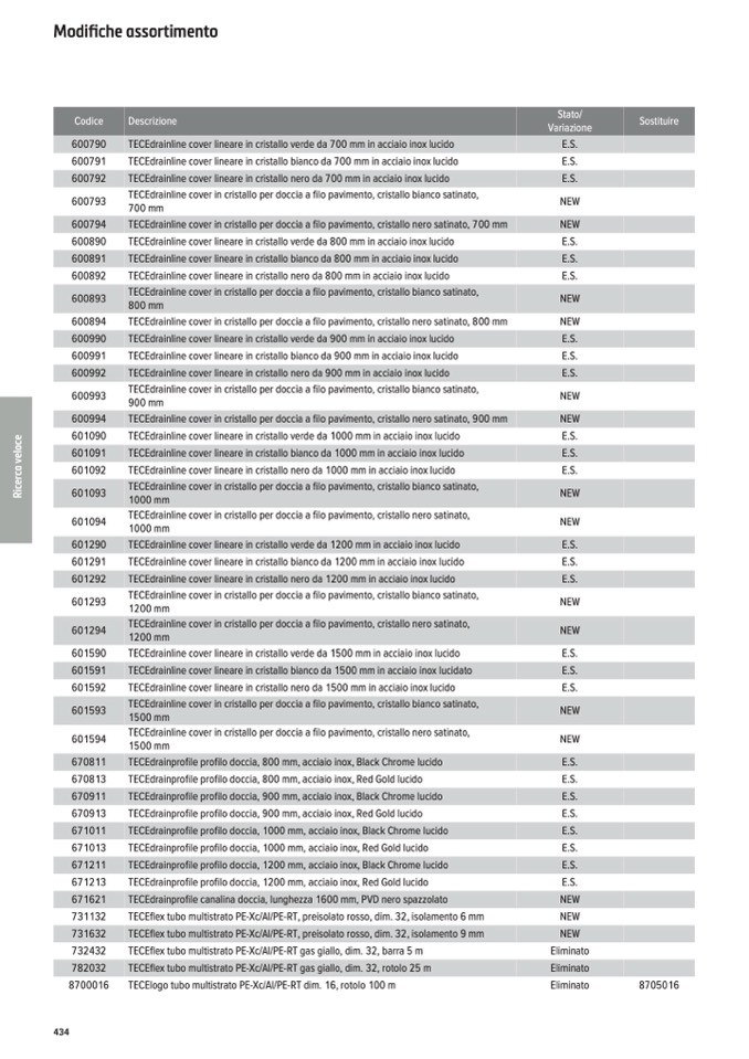 TECEdrainline cover lineare in cristallo bianco da 700 mm in acciaio inox lucido