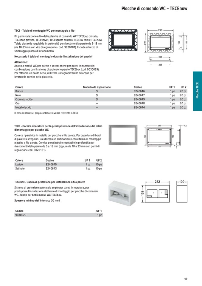 combinazione con il sistema di protezione parete TECEbox (cod. 9030029).