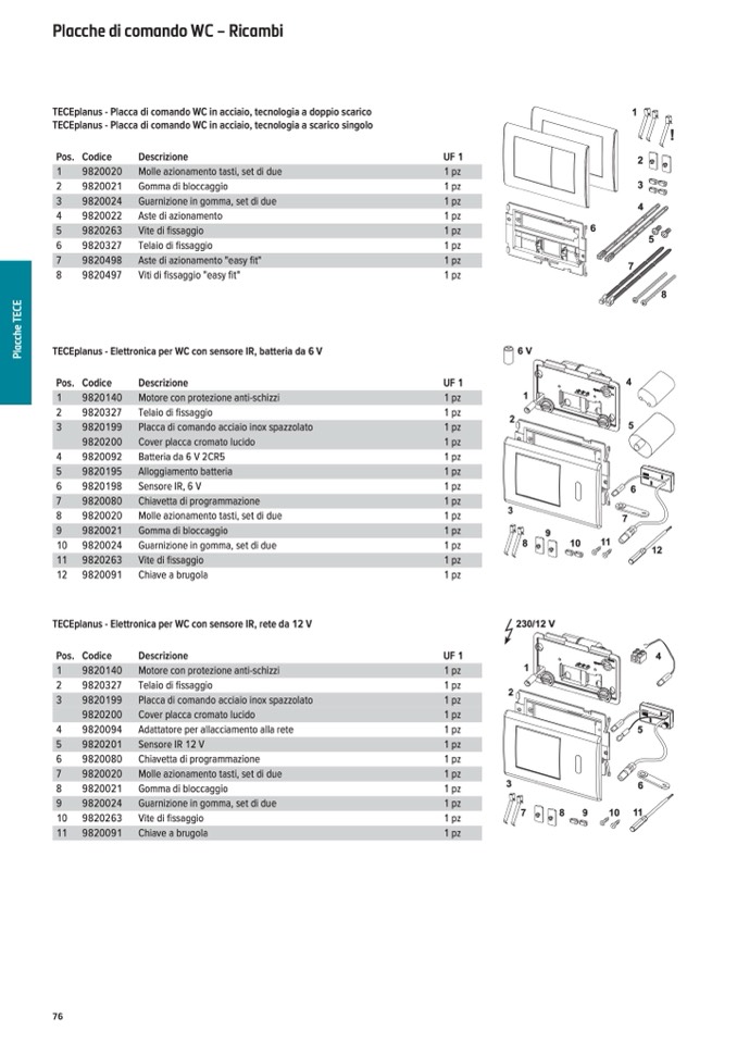 TECEplanus - Elettronica per WC con sensore IR, batteria da 6 V