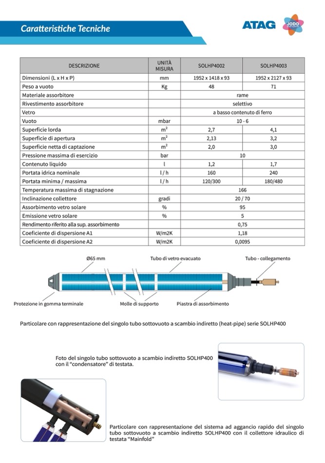 tubo sottovuoto a scambio indiretto SOLHP400 con il collettore idraulico di
