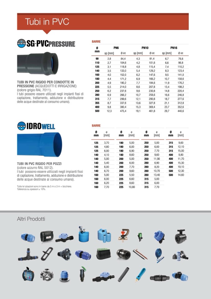Tutte le tubazioni sono in barre da 5 m o 3 m + bicchiere.