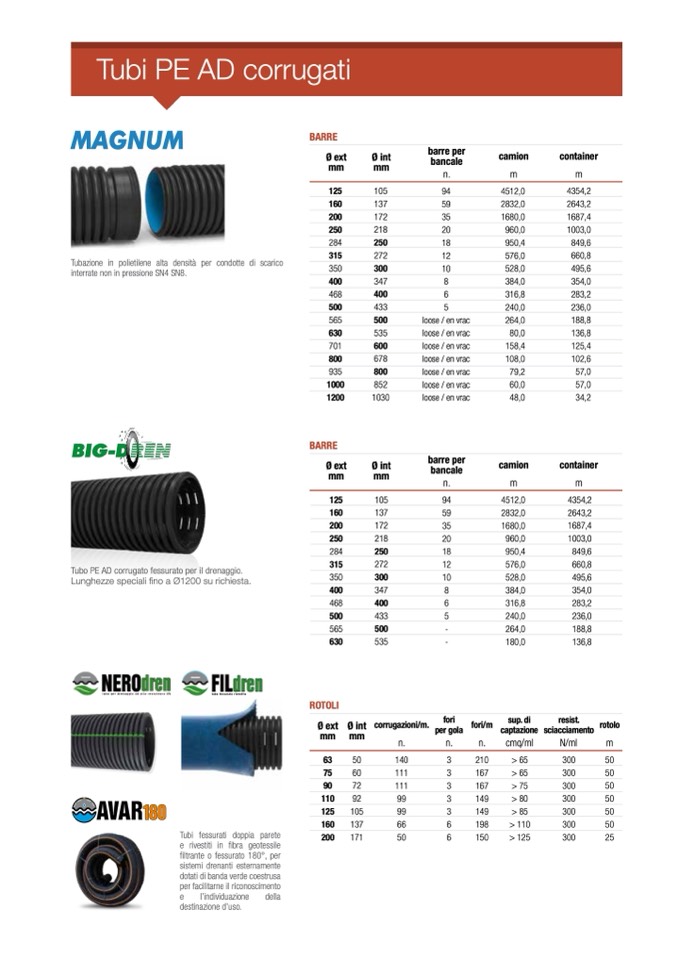 Lunghezze speciali fino a Ø1200 su richiesta.