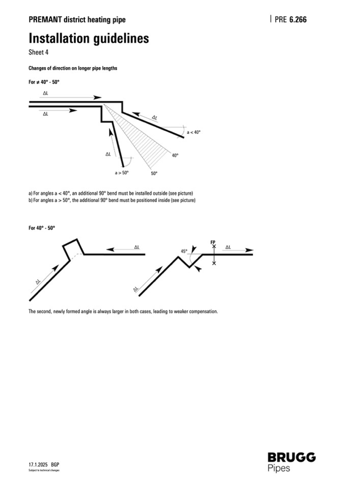 a) For angles a < 40°, an additional 90° bend must be installed outside (see picture)