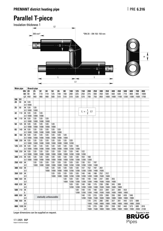 *DN 20 – DN 150: 150 mm