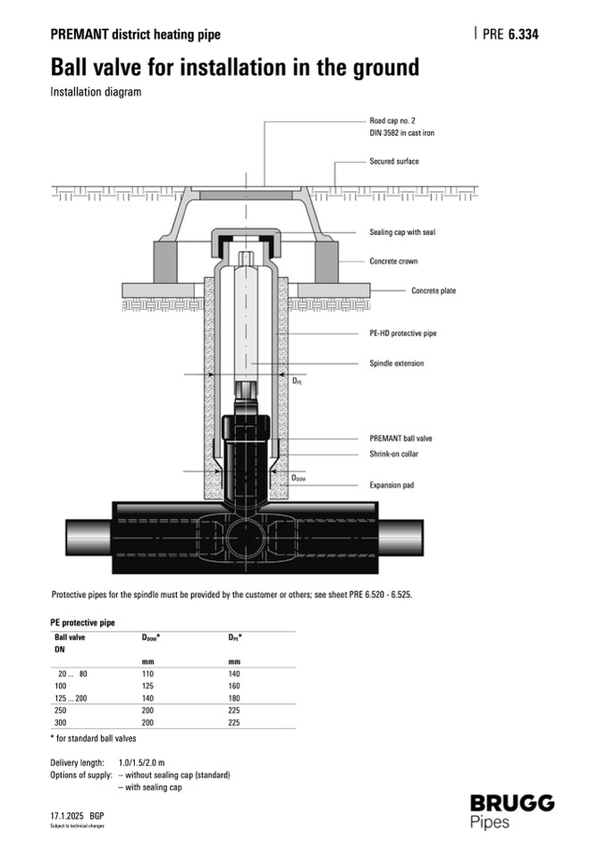 Protective pipes for the spindle must be provided by the customer or others; see sheet PRE 6.520 - 6.525.