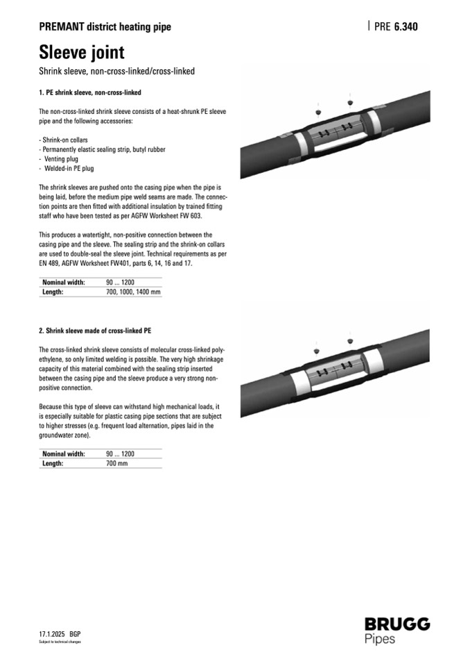 The non-cross-linked shrink sleeve consists of a heat-shrunk PE sleeve