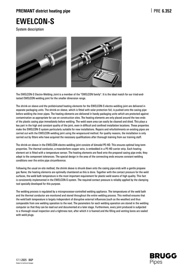 carried out with the EWELCON welding joint using the wraparound method. For quality reasons, the installation is only