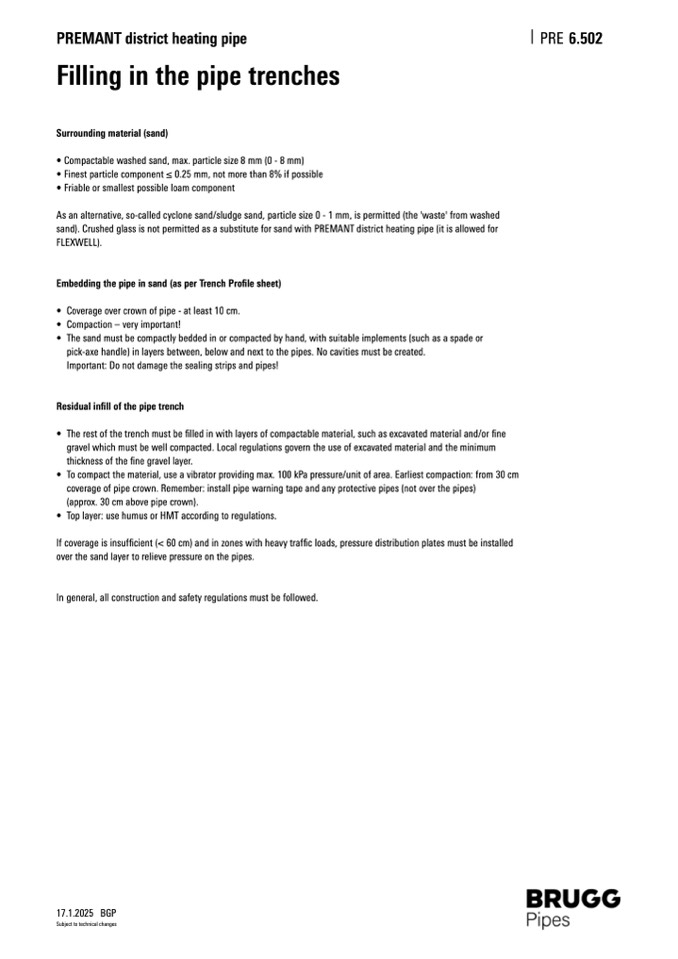 sand). Crushed glass is not permitted as a substitute for sand with PREMANT district heating pipe (it is allowed for
