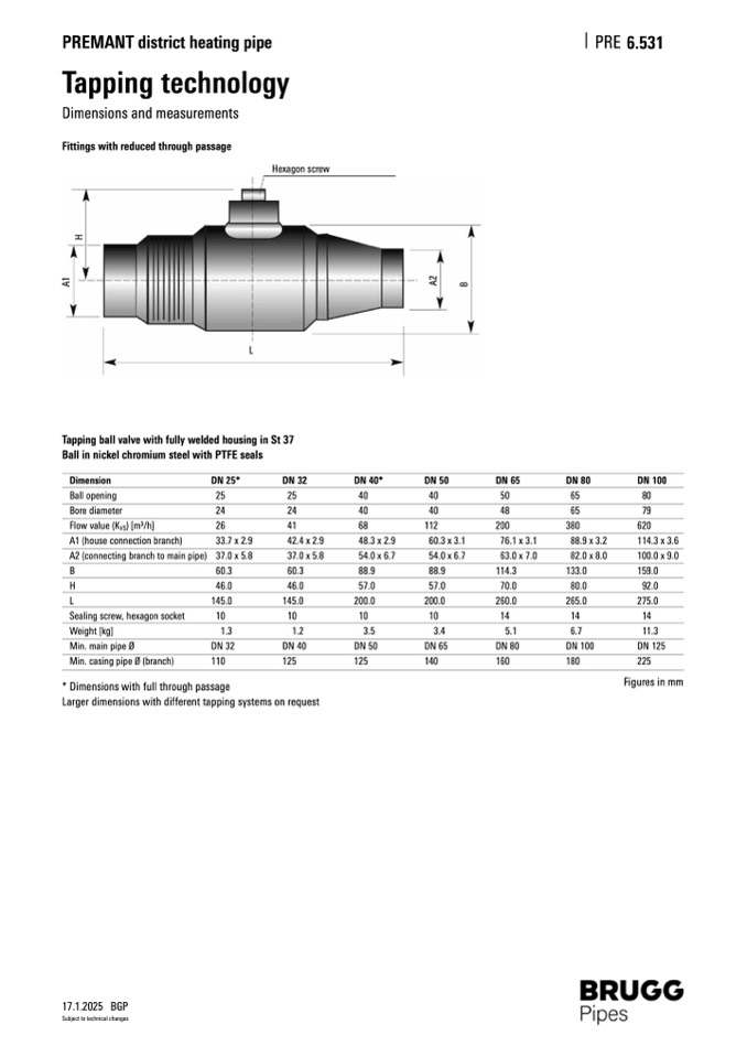 Larger dimensions with different tapping systems on request