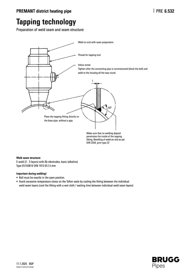weld seam layers (cool the fitting with a wet cloth / waiting time between individual weld seam layers)