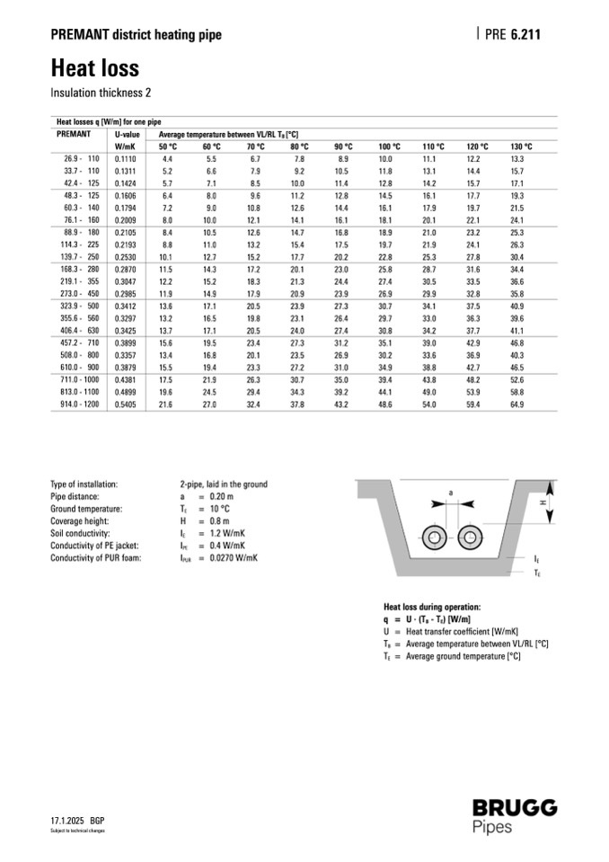 Heat losses q [W/m] for one pipe
