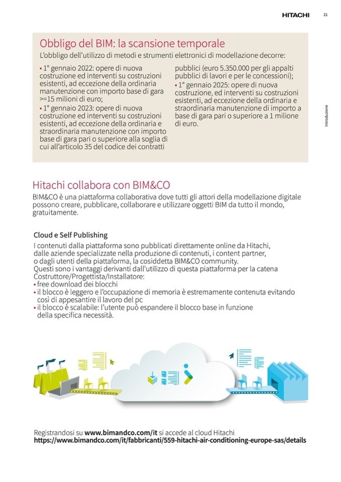 Registrandosi su www.bimandco.com/it si accede al cloud Hitachi