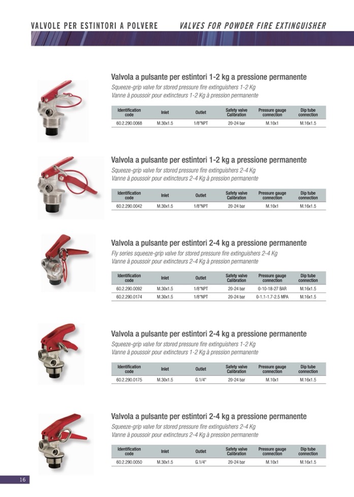 VALVOLE PER ESTINTORI A POLVERE