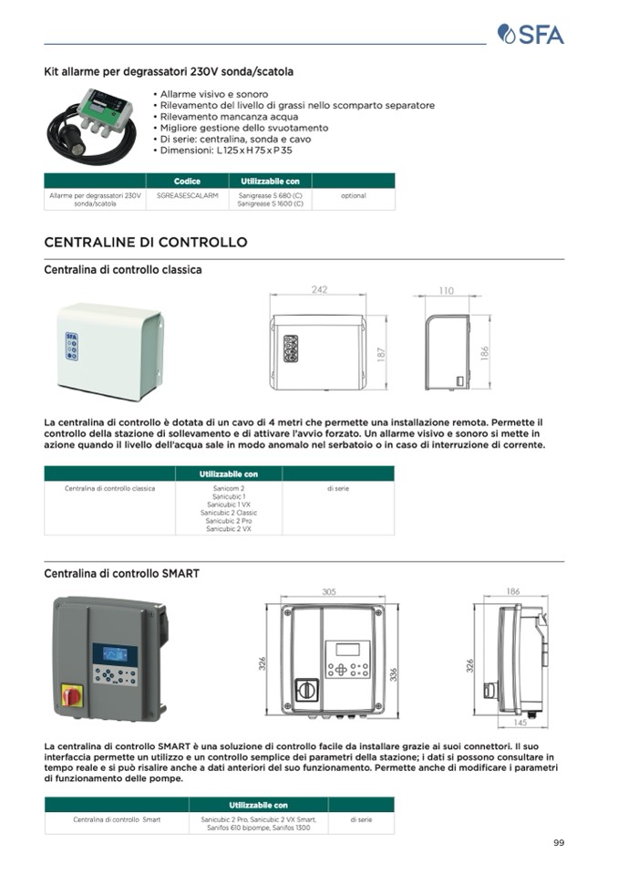 controllo della stazione di sollevamento e di attivare l’avvio forzato. Un allarme visivo e sonoro si mette in