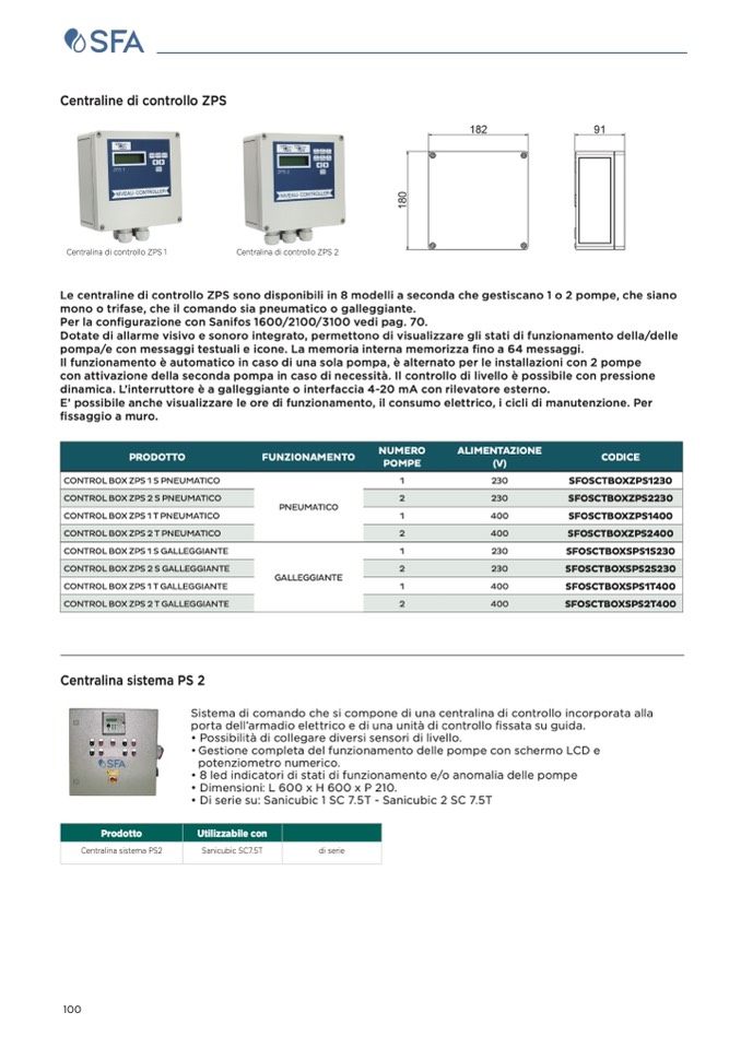 Le centraline di controllo ZPS sono disponibili in 8 modelli a seconda che gestiscano 1 o 2 pompe, che siano