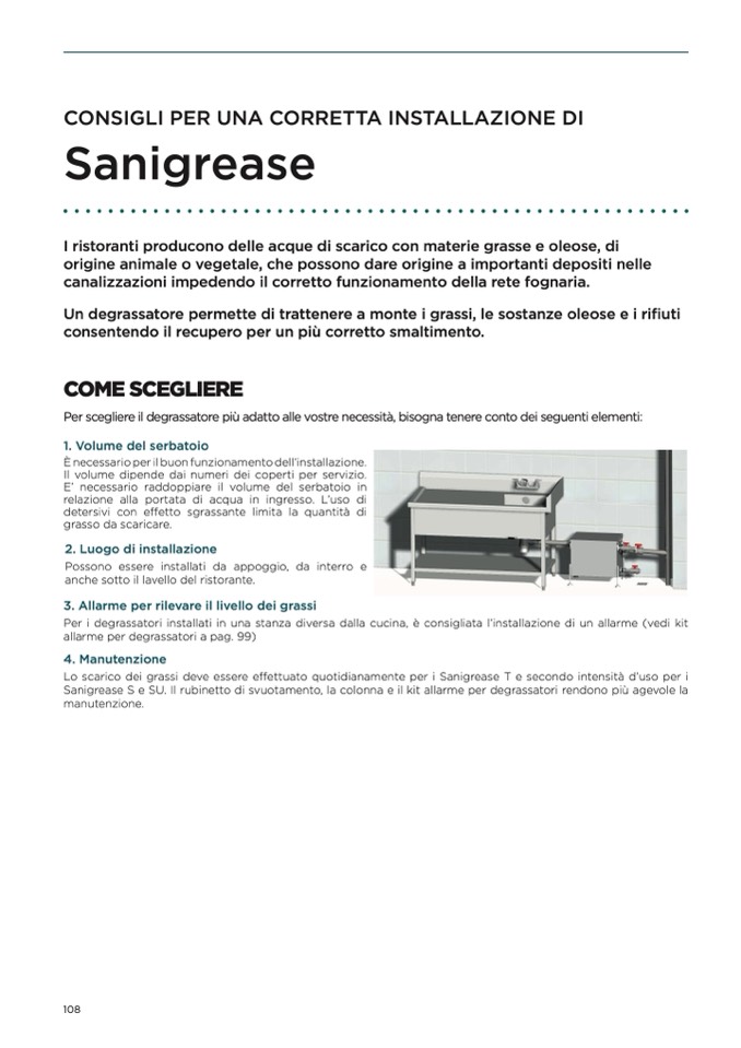 Lo scarico dei grassi deve essere effettuato quotidianamente per i Sanigrease T e secondo intensità d’uso per i