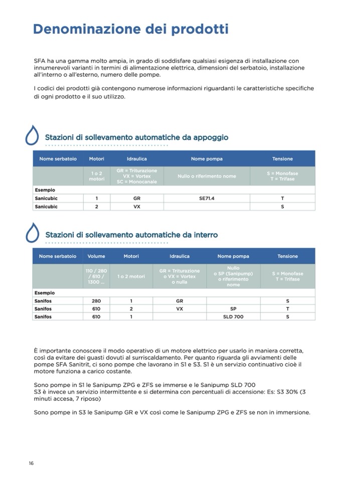 pompe SFA Sanitrit, ci sono pompe che lavorano in S1 e S3. S1 è un servizio continuativo cioè il