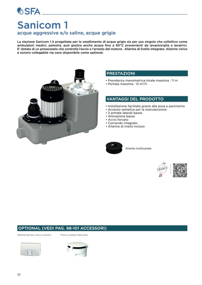 La stazione Sanicom 1 è progettata per lo smaltimento di acque grigie sia per uso singolo che collettivo come