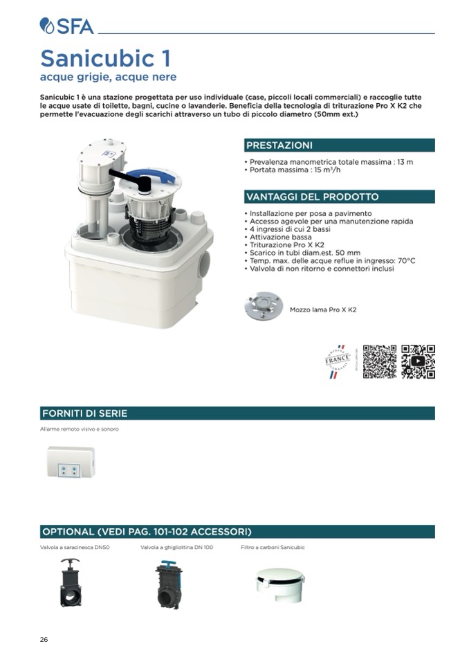 Sanicubic 1 è una stazione progettata per uso individuale (case, piccoli locali commerciali) e raccoglie tutte