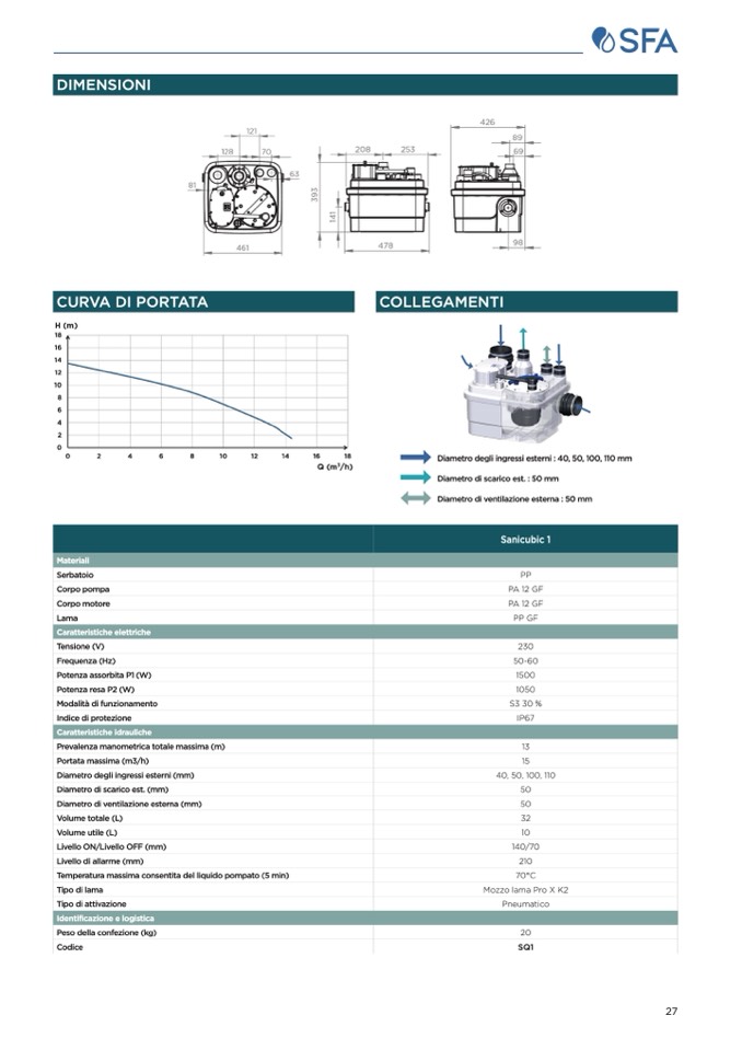 Diametro degli ingressi esterni : 40, 50, 100, 110 mm