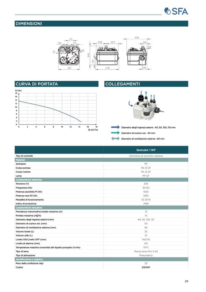 Diametro degli ingressi esterni : 40, 50, 100, 110 mm