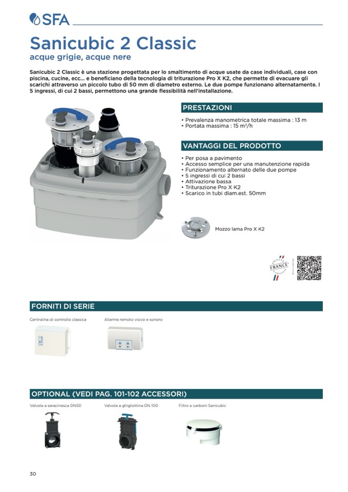 Sanicubic 2 Classic è una stazione progettata per lo smaltimento di acque usate da case individuali, case con