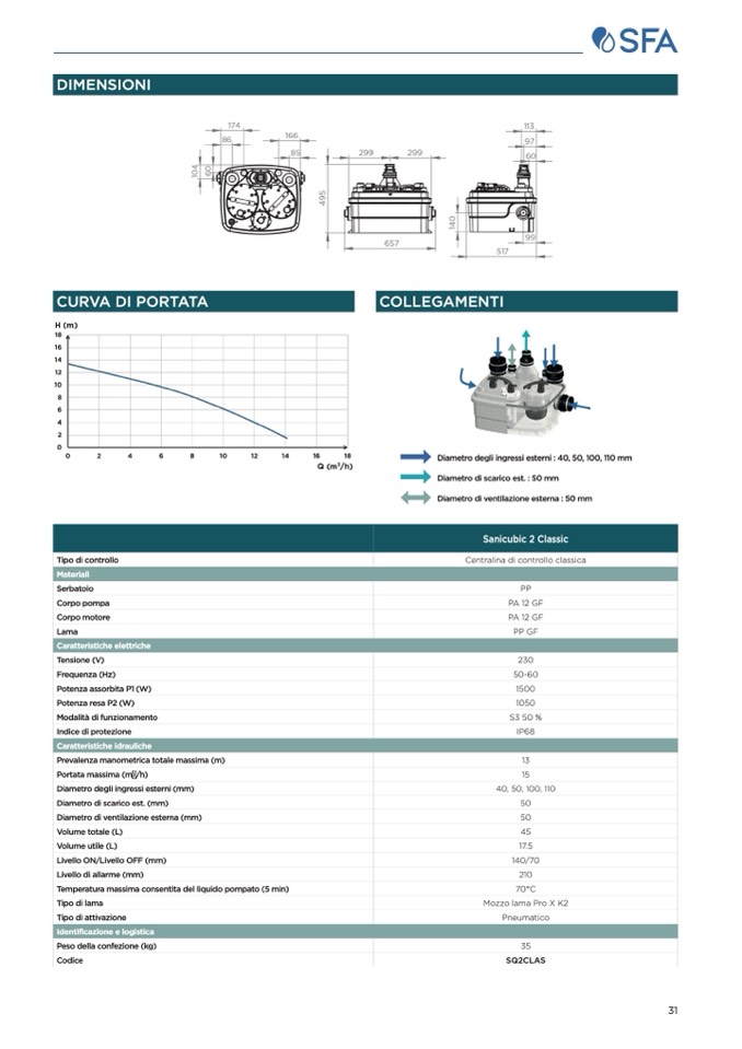 Diametro degli ingressi esterni : 40, 50, 100, 110 mm