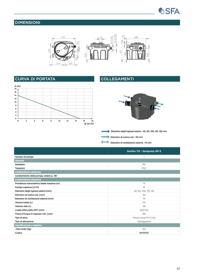 Diametro degli ingressi esterni : 40, 50, 100, 110, 125 mm