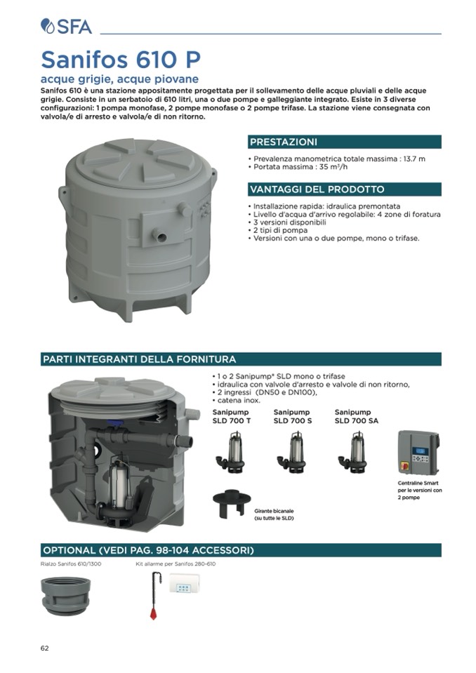 Sanifos 610 è una stazione appositamente progettata per il sollevamento delle acque pluviali e delle acque