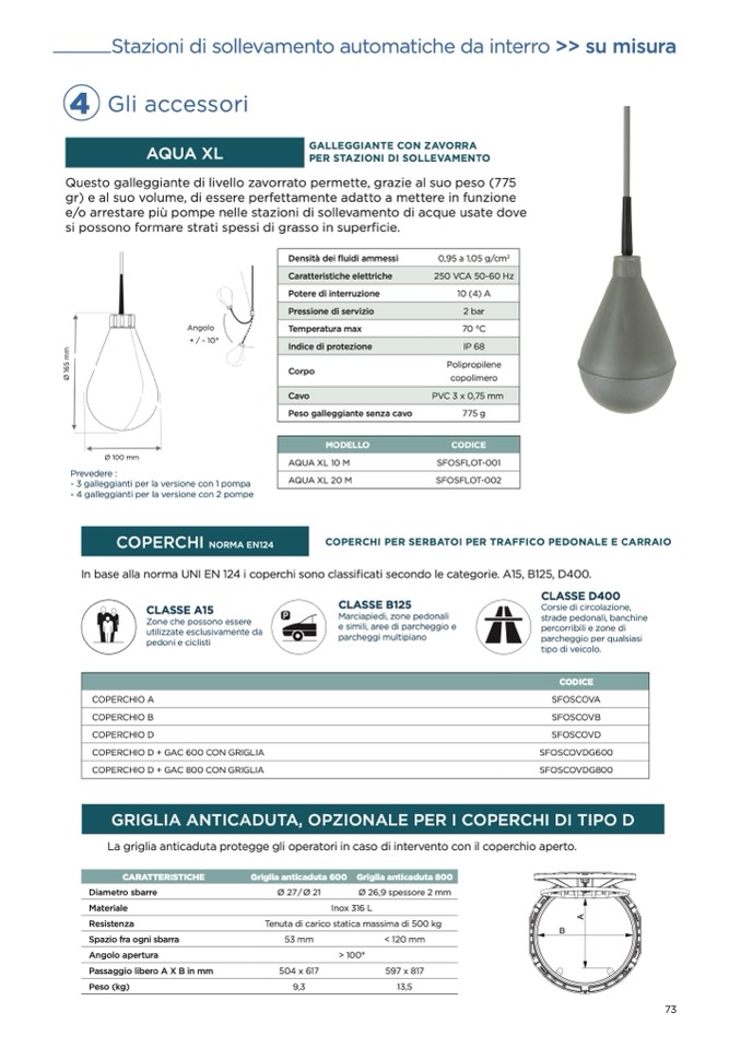 In base alla norma UNI EN 124 i coperchi sono classificati secondo le categorie. A15, B125, D400.