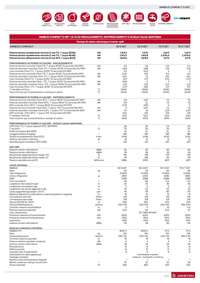NIMBUS COMPACT S NET 1,5-12 kW RISCALDAMENTO, RAFFRESCAMENTO E ACQUA CALDA SANITARIA