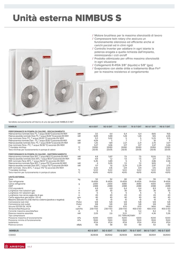 / Collegamenti R-410A 3/8’’ (liquido) e 5/8’’ (gas)