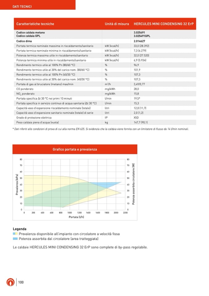 * Dati riferiti alle condizioni di prova di cui alla norma EN 625. Si evidenzia che la caldaia viene fornita con un limitatore di flusso da 14 l/min nominali.