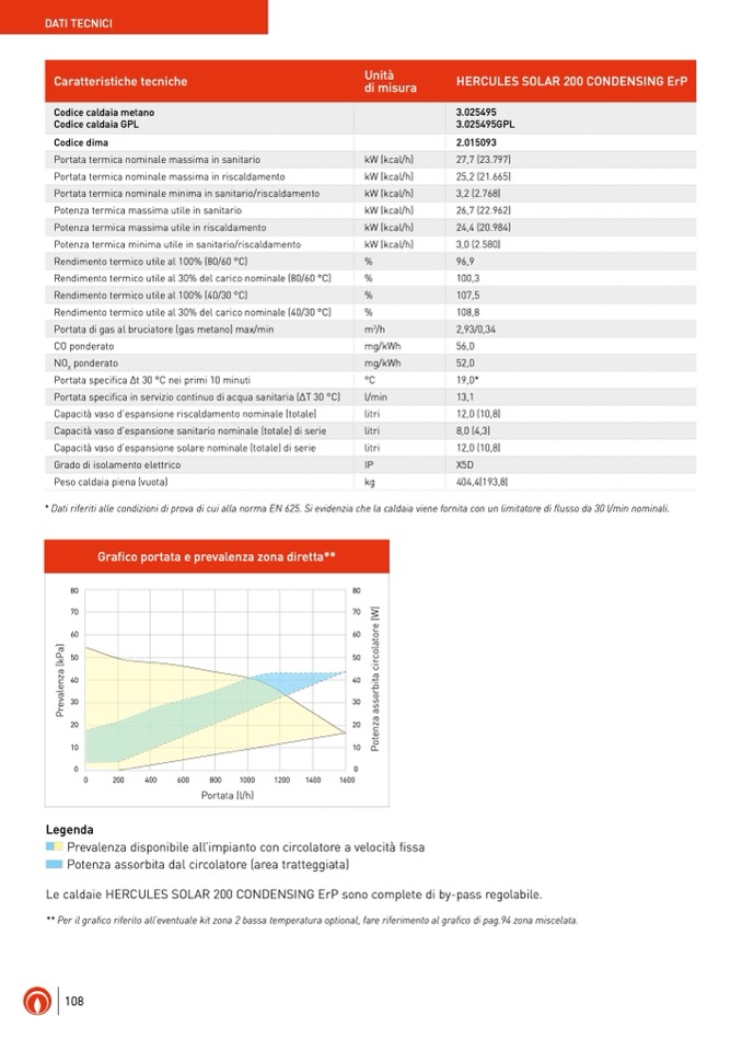* Dati riferiti alle condizioni di prova di cui alla norma EN 625. Si evidenzia che la caldaia viene fornita con un limitatore di flusso da 30 l/min nominali.