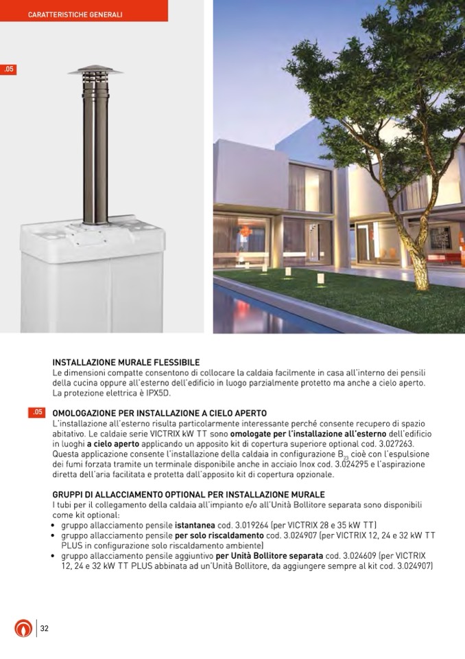 abitativo. Le caldaie serie VICTRIX kW T T sono omologate per l’installazione all’esterno dell’edificio