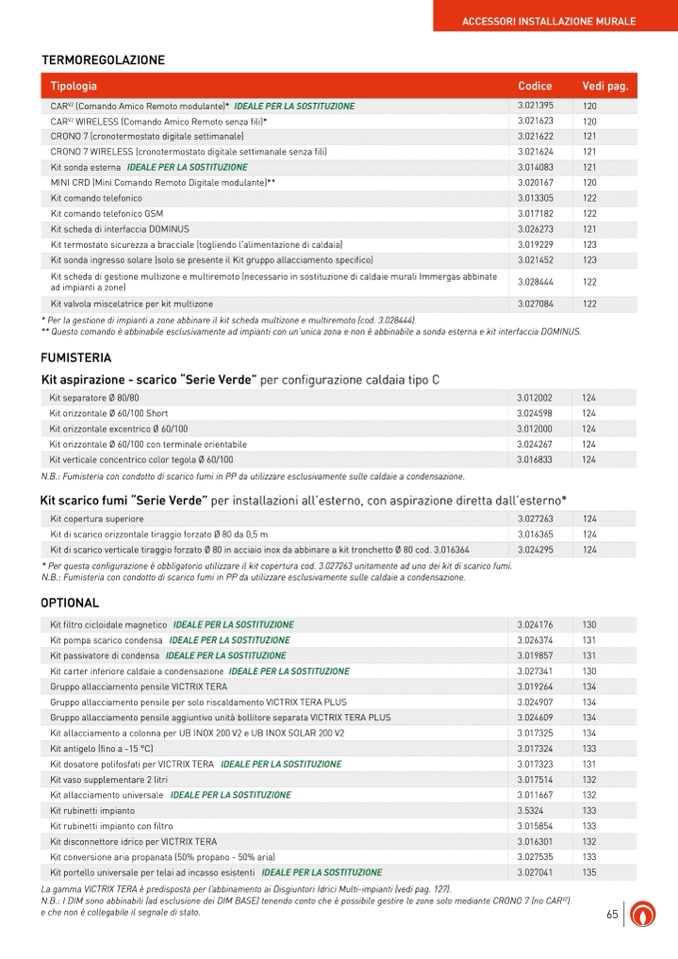 La gamma VICTRIX TERA è predisposta per l’abbinamento ai Disgiuntori Idrici Multi-impianti (vedi pag. 127).