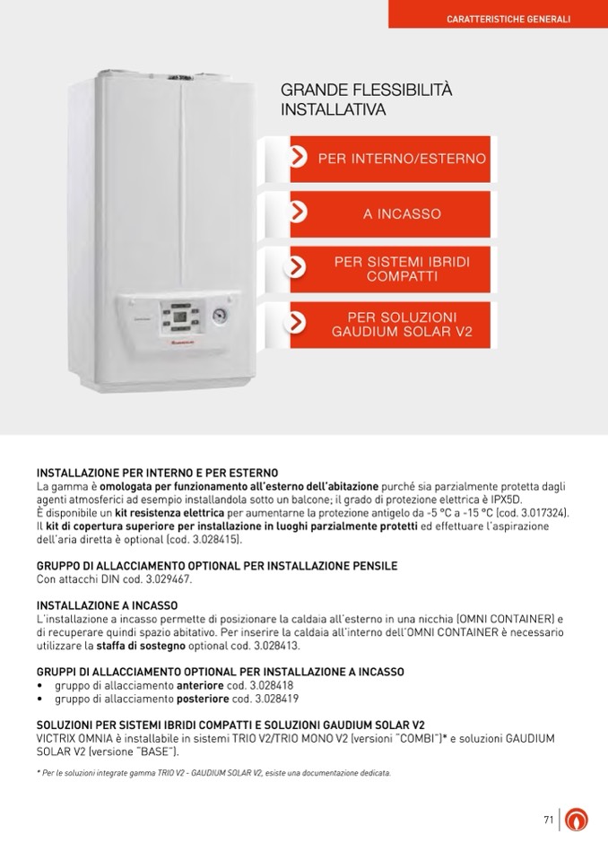 VICTRIX OMNIA è installabile in sistemi TRIO V2/TRIO MONO V2 (versioni “COMBI”)* e soluzioni GAUDIUM
