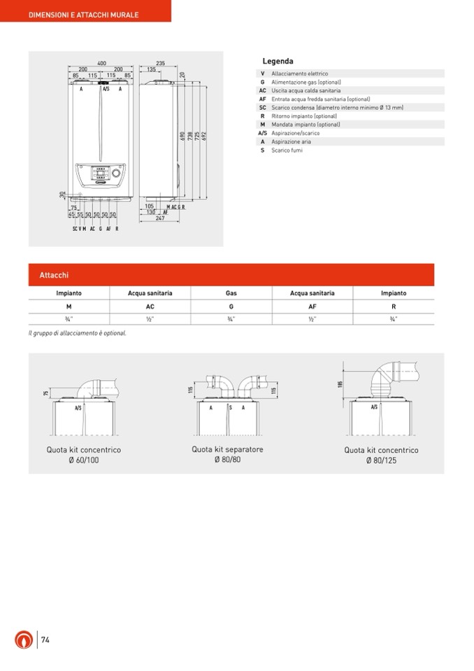 Scarico condensa (diametro interno minimo Ø 13 mm)